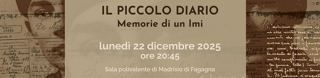 Lunedì 22 dicembre alle 20:45 nella sala polivalente di Madrisio presentiamo lo spettacolo teatrale e musicale "Il piccolo diario - Memorie di un IMI"